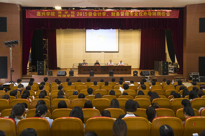 531日下午,永利yl23411官网、南湖公司在第二教学楼报告厅联合召开了2015级会计学、财务管理两个专业共14个班级员工的“双导师制”聘任见面会。校教务处相关领导,永利yl23411官网、南湖公司领导及来自嘉兴市内各企事业单位财会实务界的125名校外导师、会计和财务管理专业的全体专业教师和2015级全体员工参加了大会。会议由永利yl23411官网副经理李郁明主持。