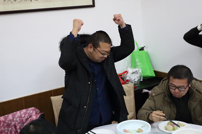 在兴致高涨包饺子的同时,联欢活动还安排了各种丰富多彩的互动环节:评选最美最难看最具创意饺子等趣味游戏和包饺子吃饺子比赛。在擀面皮、包饺子一条龙比赛中,李亚老师一马当先,以速度质量双优的成绩力拔头筹,拿下全能冠军。在“吃饺子”男子组中,栾斌老师用最短的时间吃完十个饺子,拔得头筹,大家评价他吃出了“气吞山河”的气势。在女子组中,陈野老师以“巾帼不让须眉”的实力,大比分差勇夺第一。游戏中大家争先恐后、跃跃欲试,场面高潮迭起,掌声不断,热闹非凡,大家用欢声笑语增进着彼此的友情。