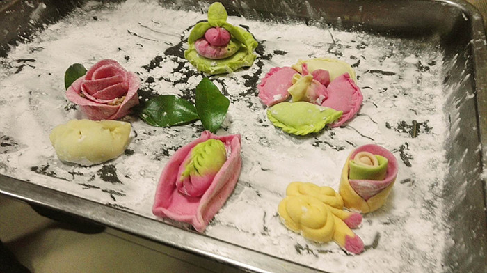 活动现场,大家按小组分成6桌,有和馅的、有擀面皮的、有包的,有相互切磋的,也有边包饺子边畅谈工作和生活心得的,大家分工协作忙得不亦乐乎。