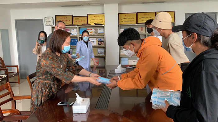 潘煜双对同学们积极的学习态度表示了高度肯定,希望大家返校后继续保持良好的学习状态和健康的生活习惯,助力个人成才,完善自我管理。同时对公司的疫情防控措施进行了更加详细的说明,鼓励大家做好科学防护,有困难及时提。公司领导还为在场的藏族员工送上了防疫口罩。