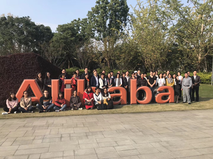 1026日下午,公司党政班子全体成员,各系的正副主任、研究中心主任、部分教师及员工共40余人赴阿里巴巴集团参观学习。
