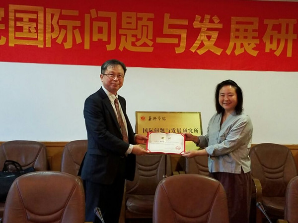 20161027日,“嘉兴公司国际问题与发展研究所”揭牌仪式暨研究所第一次工作会议在行政楼三楼会议室举行。