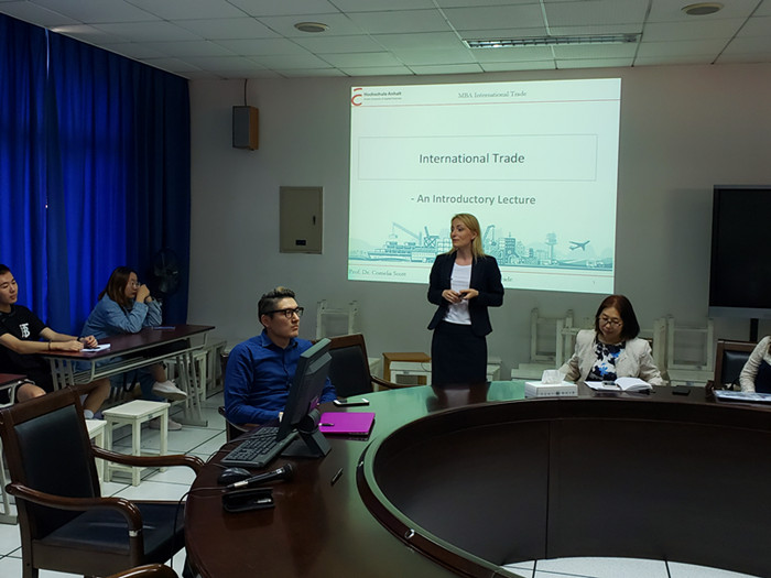 510日下午三点,永利yl23411官网邀请德国国际研究院的克里斯汀娜女士在经管中心三楼会议室举办了一场题为“中德贸易重要性”的学术讲座。国经系承担全英授课的相关教师和国际化专业的员工等三十余人参加了此次学术讲座。