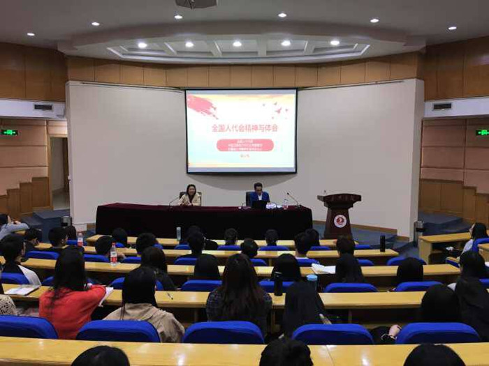 胡少先教授介绍了自己光荣当选全国人大代表的经历,作为全国会计行业仅有的三名代表之一,这是难得的机缘和光荣使命。他向大家普及了有关两会的几项重要议程的知识,从修宪预案、机构改革、主席宣誓到代表建言,诙谐幽默的讲演风格营造了宽松而富有吸引力的氛围,丰富的信息量让到场的师生们专注而安静。大家不仅了解了新时代治国理政的新理念新思想新战略,同时也受到了会计行业优秀代表的熏陶和影响。