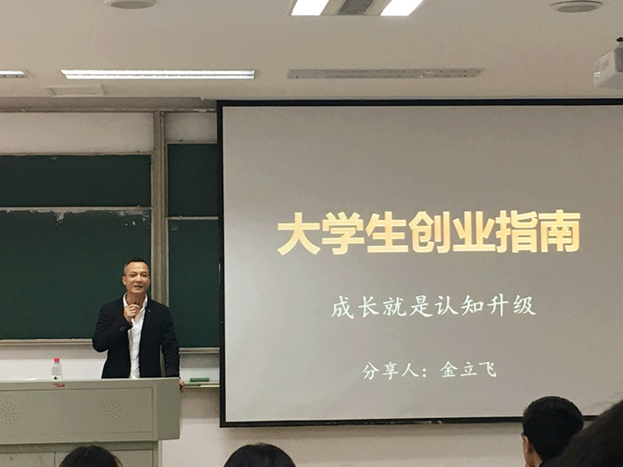 围绕“老员工创业指南——成长就是认知升级”这一主题,金立飞与同学们分享了自己对创业的认识、创业过程中对自我的认知升级和对创业的思考。他用自己独特的见解告诉同学们, “有时候不做什么比做什么更重要”、“回归事物本源去思考基础性的问题”这样富含哲理的创业与人生道理。金立飞还讲述了“定位、企业文化、商业模式”等营销方面的知识,其理解深刻而又不失专业的讲解引发了同学们深思。