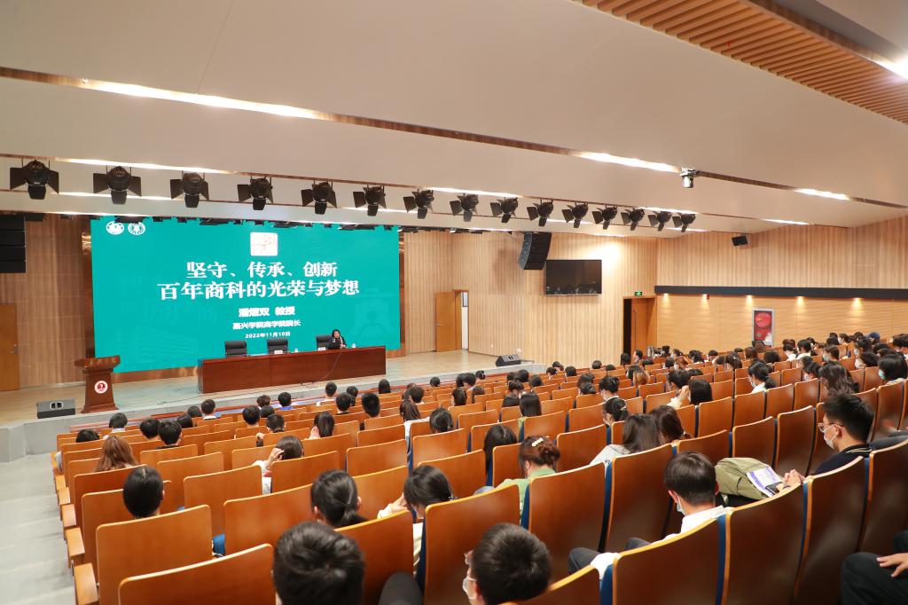 11月10日下午,永利yl23411官网“弘商讲堂”在图书馆报告厅开讲。永利yl23411官网经理潘煜双教授作题为《坚守、传承、创新:百年商科的光荣与梦想》的首场讲座。公司党委书记邵燕主持副经理李郁明、教师代表以及200余名员工到会聆听报告