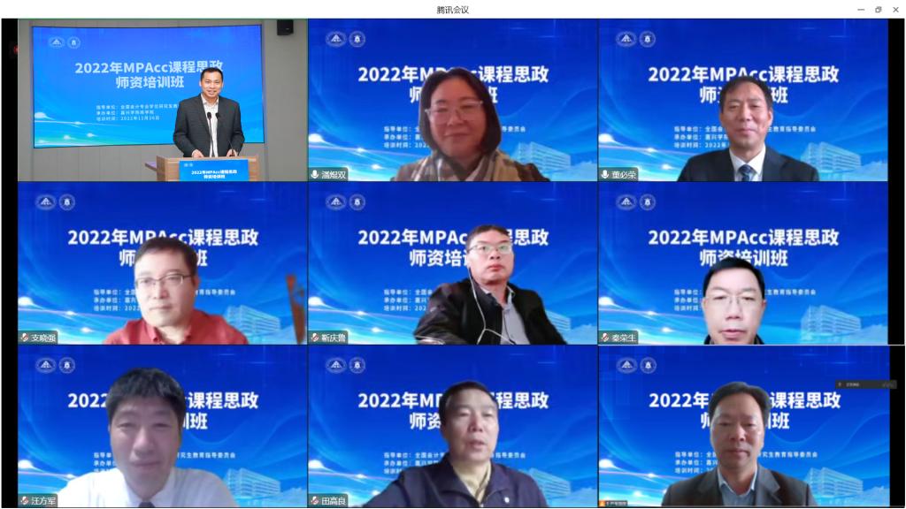 11月26日,在全国上下深入学习贯彻党的二十大精神之际,由全国会计专业学位研究生教育指导委员会指导,嘉兴公司永利yl23411官网承办的首届MPAcc课程思政团队培训班线上开班,会议由嘉兴公司永利yl23411官网潘煜双教授主持,来自全国77所高校1000余名MPAcc教师在线参加了本次培训班。