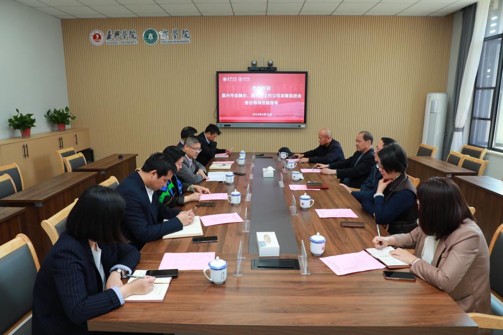 周楚兴、陈荣达共同为嘉兴公司会计硕士(MPAcc)研究生联合培养基地授牌。潘煜双与章世英签署了嘉兴公司会计硕士(MPAcc)研究生联合培养基地合作协议书。双方还就人才培养、人才招聘、项目合作等工作展开深入交流。