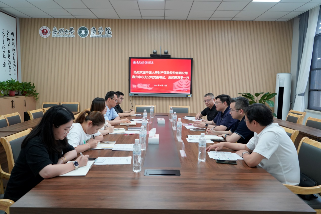 6月21日下午,中国人寿财产保险股份有限公司嘉兴中心支公司党委书记、总经理冯旻一行到永利yl23411官网调研交流。公司党委书记虞岚、副经理冯磊东和相关老师参加座谈交流。