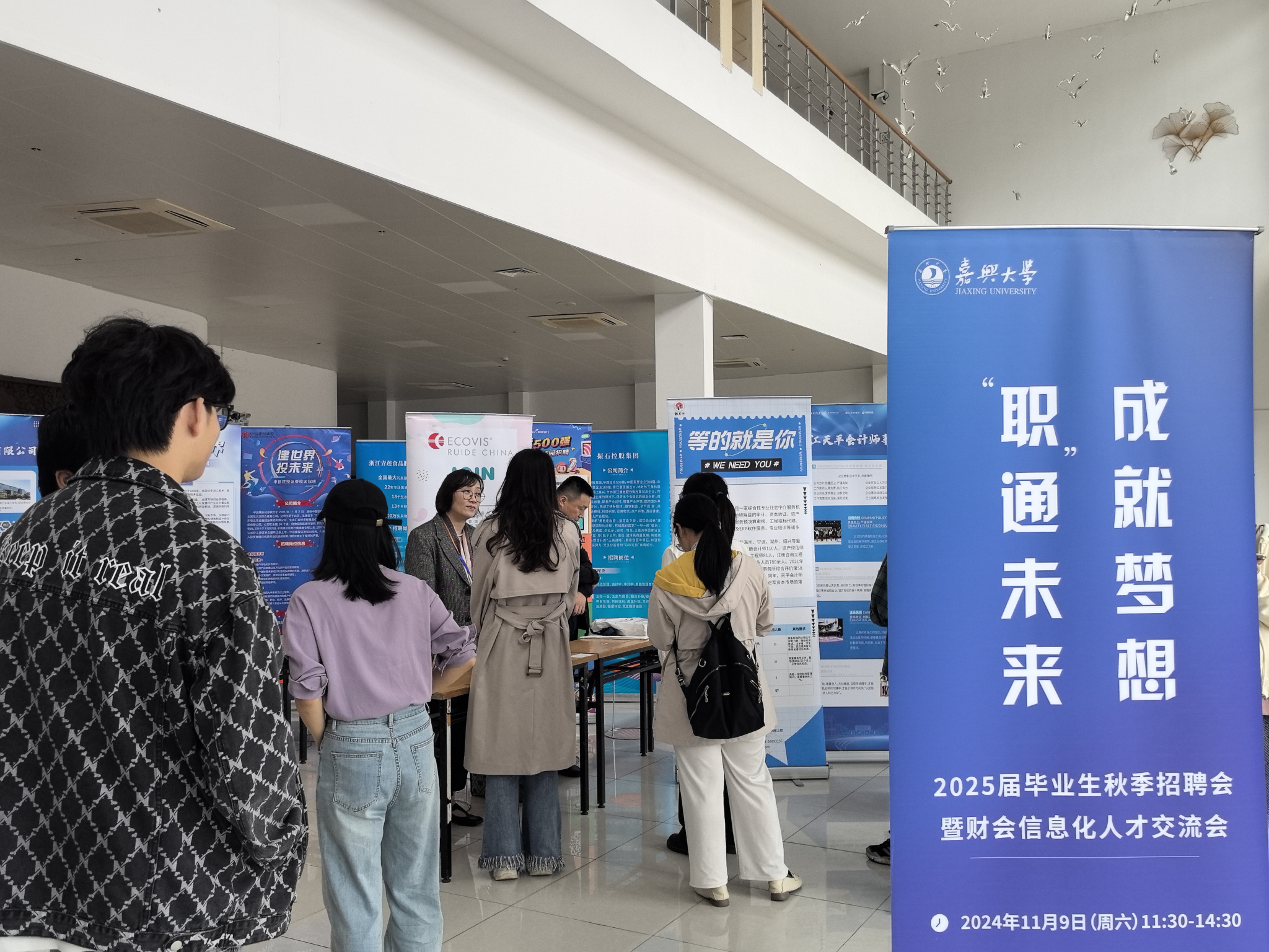 本次竞赛决赛现场还召开了“‘职’通未来,成就梦想”2025届毕业生秋季招聘会暨财会信息化人才交流会。十余家企业与2025届毕业生和各高校学子进行了面对面的宣讲和交流。本次竞赛搭建了便捷的校企交流平台,促进高校与行业在人才供需上的交流与对接,为更多高校学子精准提供就业机会,充分体现了“竞赛促进就业”的功能。