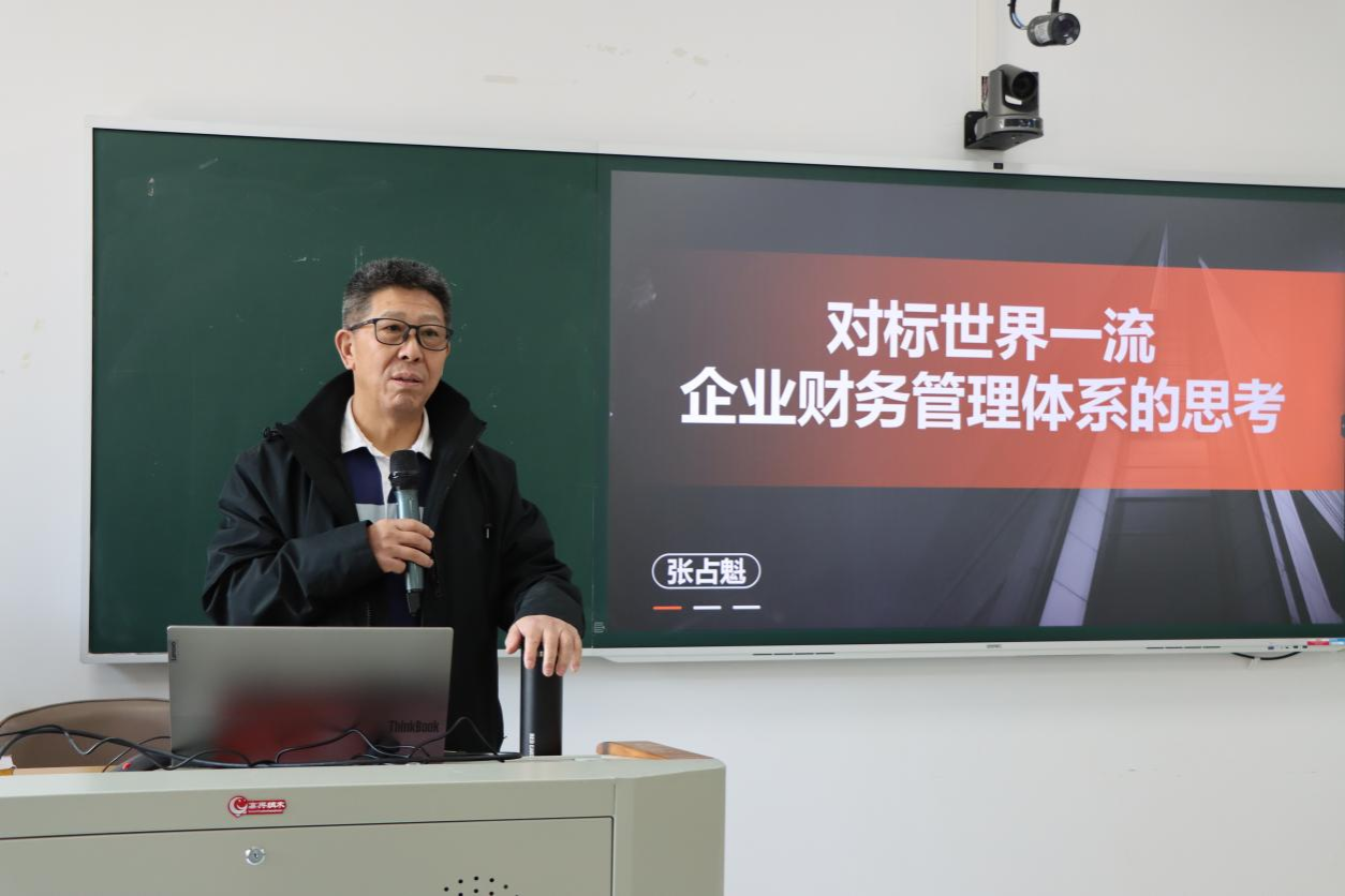 张占魁博士“对标世界一流企业财务管理体系的思考”为主题,深入解读了世界一流财务管理体系的核心特征,明确了对标方向及三大实现路径。他结合华为、西门子、苹果等世界一流企业的财务管理模式,生动阐述了数字化浪潮下传统财务模式的变革趋势。他指出,全链条价值对标和价值创造已成为财务管理的新趋势,企业和财务人员必须紧跟时代步伐,积极拥抱新技术、新理念。讲座最后,张占魁博士结合自身职业发展经历,鼓励在场研究生们要勇于面对困难,在学习和实践中不断寻找自身差距,提升自我价值,寄语同学们要珍惜在校时光,努力提升专业素养,为嘉大的未来发展贡献自己的力量,也为个人职业成长奠定坚实基础。