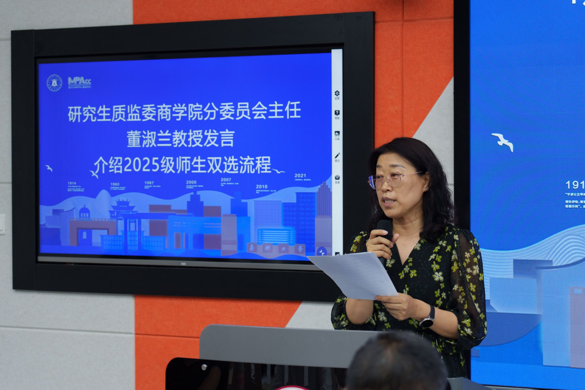 会议伊始,崔晓钟介绍了会议议程及参会老师随后,研究生质监委永利yl23411官网分委会主任董淑兰教授介绍了2025级会计硕士师生双选流程,并寄望同学们以高标准完成每一项学业任务——不论是课程学习、实习实践,还是毕业论文的选题、研究与答辩,做“高标准、严要求”的受益者、践行者和维护者。