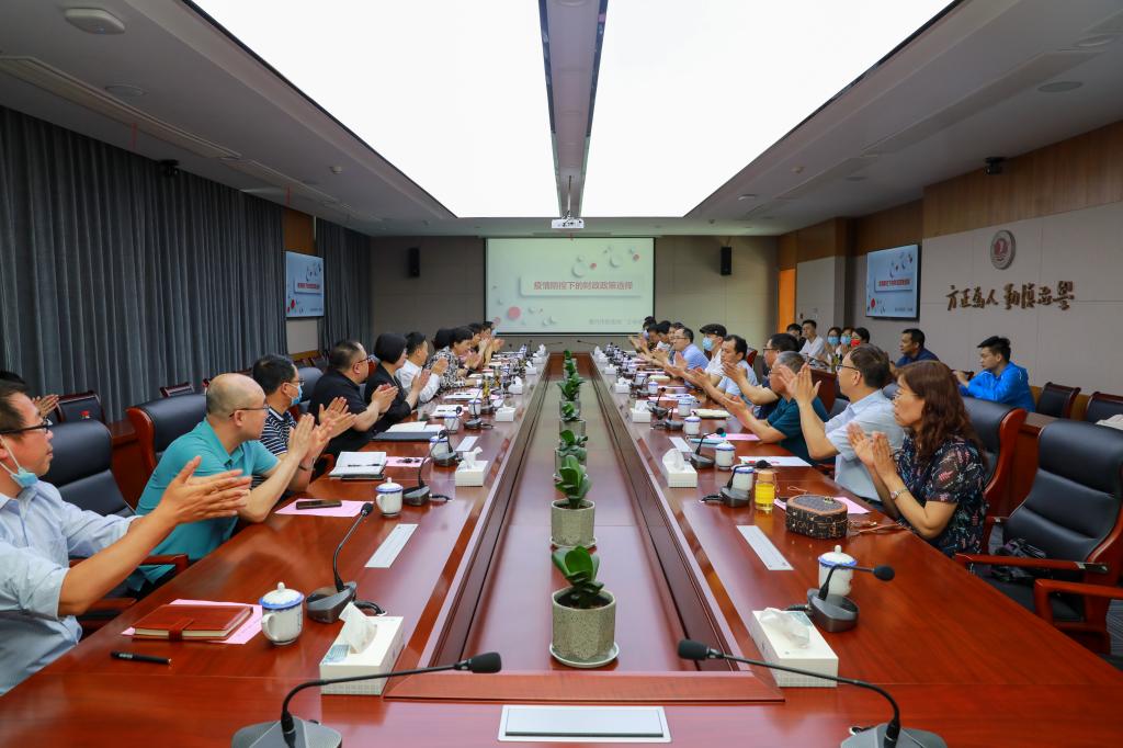 王申峰以“疫情防控下的财政政策选择”为主题,从“当前的经济形势怎么看”“嘉兴当前怎么办”和“财政应该怎么干”三个方面,深入分析了疫情防控下的财政政策选择问题
