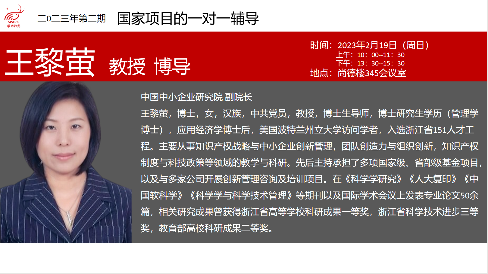 SPARK学术沙龙2023年第二期:国家项目的一对一辅导