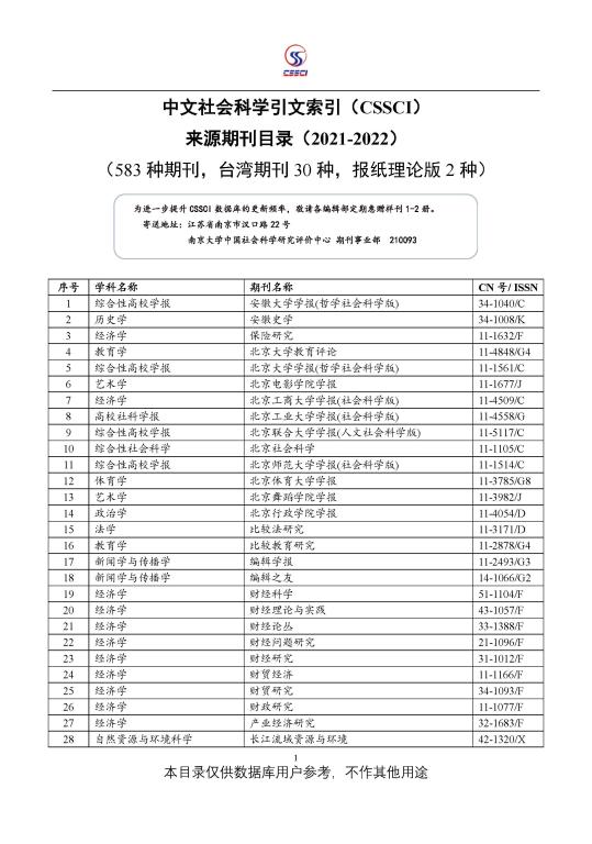 - 附件【CSSCI来源期刊目录(2021-2022).pdf】已下载次