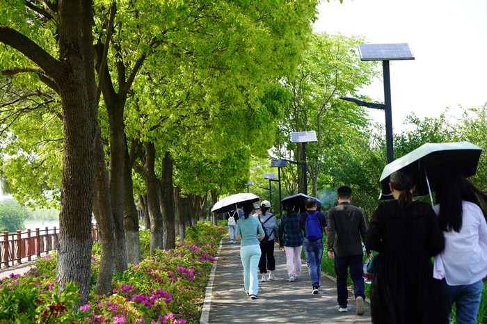 本次毅行以新塍塘绿道入口为起点,至沙家浜革命传统教育基地,全程约7公里。活动当日,天气晴朗、风和日丽,活动中,大家迈着矫健的步伐,满怀激情地沿着新塍塘一路向北。一个多小时的徒步毅行中,老师们撸起袖子、迈开脚步,在奋力前行和不断超越中感受乐趣、收获健康,在绿树成荫、景色宜人的乡间绿道上穿梭,欢声笑语不断。