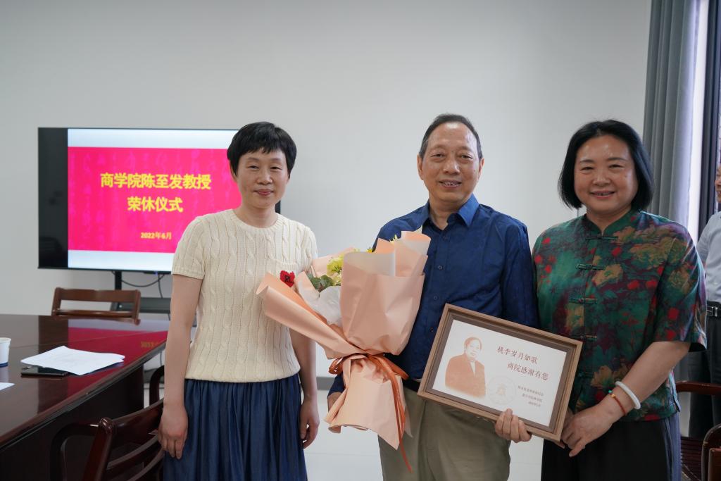 在荣休仪式上,邵燕代表公司对陈至发教授十几年来为公司建设和事业发展的无私奉献致以衷心感谢,希望陈教授今后能继续关注和支持公司的发展潘煜双向陈至发教授多年来始终坚持在教学和科研第一线表示由衷的敬意,希望年轻教师要以光荣退休的老教师为榜样,坚定理想信念,涵养高尚师德,提升业务水平。