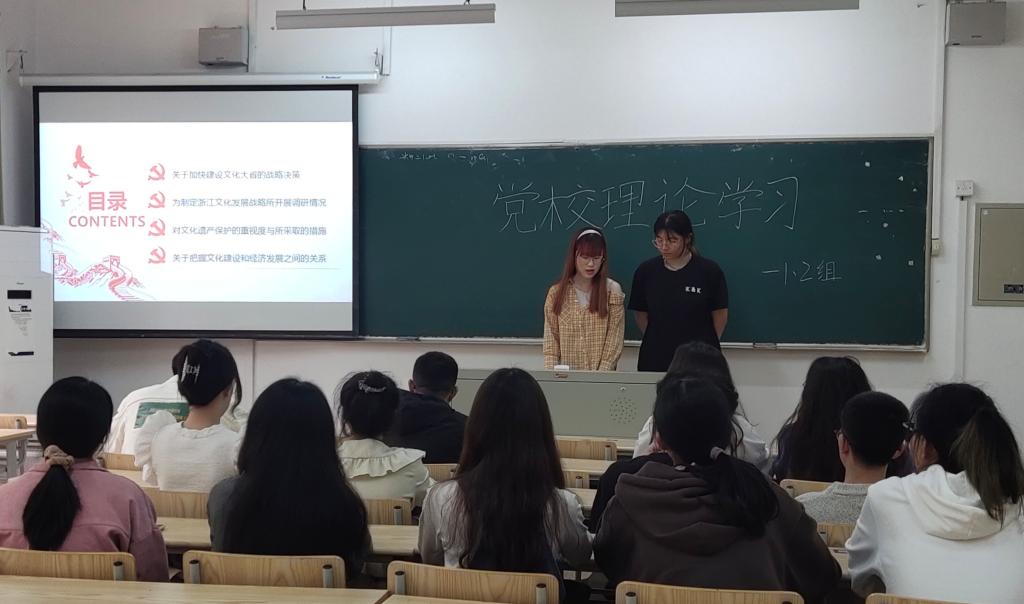 营销专业学习小组则以接力朗读的方式,围绕“习近平同志的'两山论’是非常了不起的思想创造”专题开展理论学习。学员严枚婷深有感触,”绿水青山就是金山银山,我要努力学习、奋发有为,毕业后我也想投身到乡村振兴的希望田野中去。”