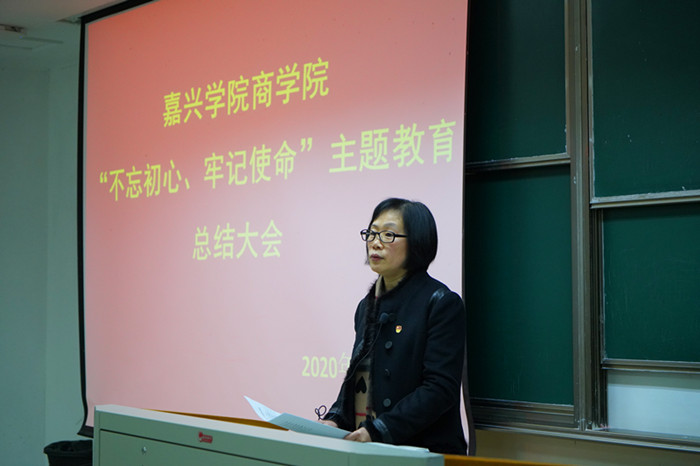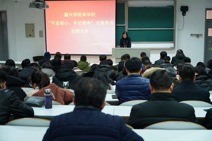 党委书记邵燕代表公司党委从主题教育开展情况、取得成效、存在问题和今后工作方向四个方面作总结报告。她指出,自“不忘初心、牢记使命”主题教育启动以来,公司党委在公司党委的精心指导下,严格按照《中共嘉兴公司委员会关于开展“不忘初心、牢记使命”主题教育的实施意见》,坚持“抓思想认识到位、抓检视问题到位、抓整改落实到位、抓组织领导到位”,将主题教育与立德树人、教书育人结合起来,与公司申硕创大等各项中心工作结合起来,着力解决师生最关心最直接最现实的问题,实现了主题教育理论学习有收获、思想政治受洗礼、干事创业敢担当、为民服务解难题、清正廉洁作表率目标。邵燕指出,开展“不忘初心、牢记使命”主题教育,虽然在时间安排上有节点,但在责任落实上只有进行时、没有完成时。对进一步巩固升华主题教育成果,她提出四点要求:一是以更高标准持续深入抓好理论武装;二是以组织力提升为重点持续强化基层党组织建设;三是抓住问题整改推进公司高质量发展;四是着眼挺纪守规营造干事创业的氛围。
