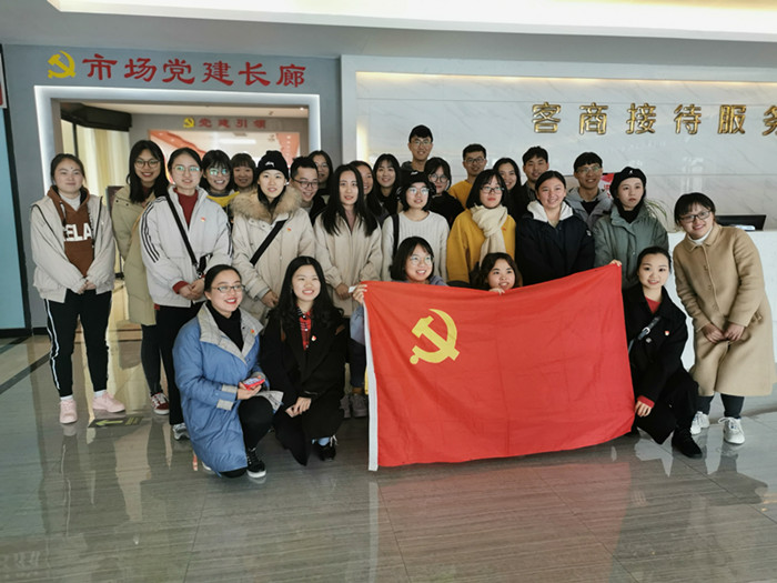 师生此行先前往洪合镇毛衫市场党支部进行学习交流。由该党支部同志带领公司师生参观了毛衫文化博物馆、市场党建长廊和网红直播中心,通过专人讲解、历史资料阅览、宣传片观看等多种方式介绍了洪合毛衫市场历史蜕变之路和当前运营情况,也学习到了他们经营与党建相结合的优秀理念。随后师生来到洪合镇文化公园,参观了纪念碑、洪合城市客厅和青年学习社,了解和学习以王洪合为代表的一大批先进党员通过“坚守初心,以血肉担当使命”的方式,打造新型特色党建工作的洪合品牌