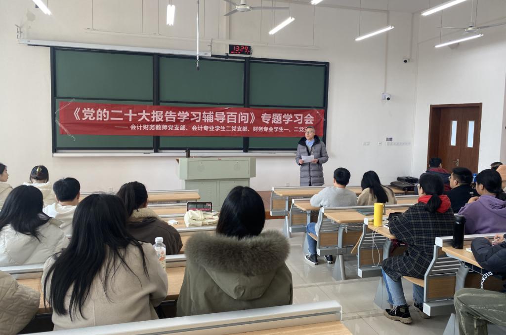 近日,永利yl23411官网会计财务教师党支部联合财务专业员工一、二党支部、会计专业员工二党支部在明德楼236举行集体学习会,集中学习党的二十大精神。全体党员70余人参加学习会,会议由会计财务教师党支部书记丁庭栋主持。