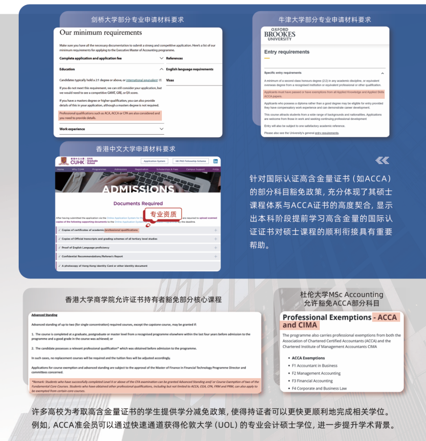随着出国申请的大陆员工增加,竞争越来越激烈,拥有高含金量证书能显著提升个人竞争力,助力快速收获名校Offer。例如,香港中文大学的申请材料中要求员工提交“Professional qualifications(专业资格证书)”;同时,众多名校高度认可国际性的高含金量证书。