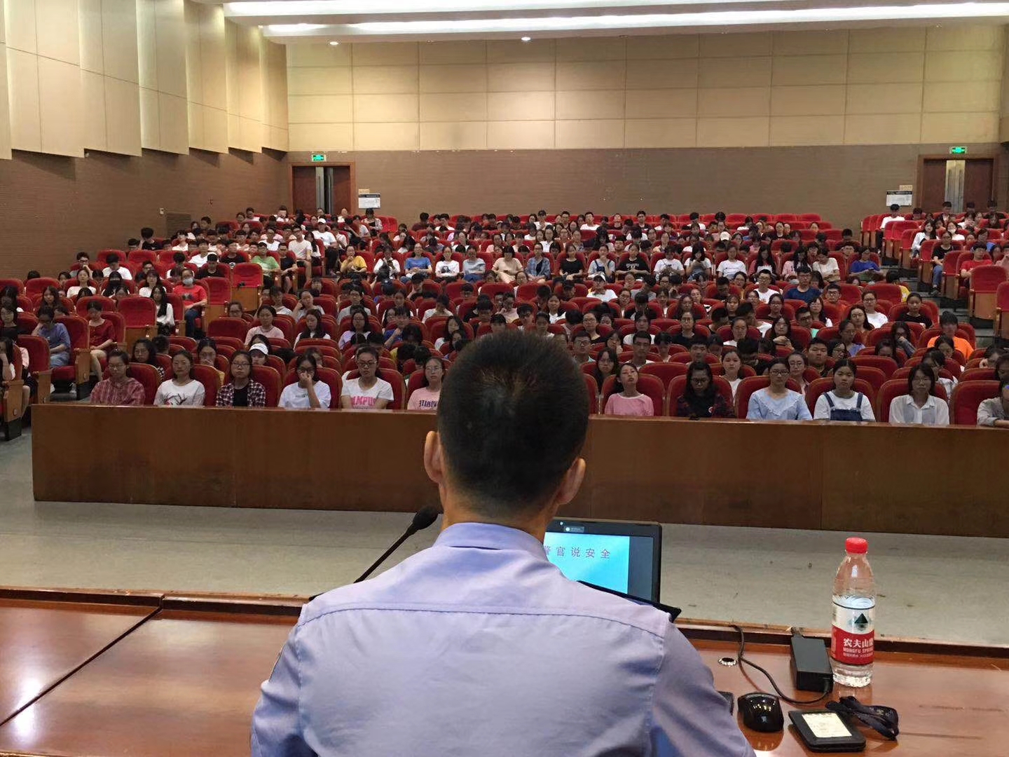 9月7日晚,公司在第二报告厅开展2018级新生安全教育讲座。本次讲座邀请了新兴派出所冯坚警官担任主讲人,2018级全体新生参加此次讲座。