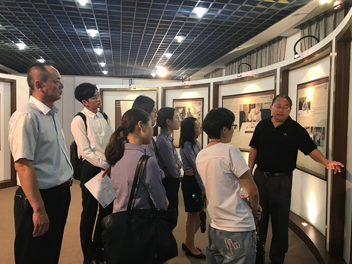 从第一展厅开始,吕书记对馆中每张照片的历史背景以及照片里人物相关历史事件作了详细而有深度的解说,七名讲解员从珍贵史料、杰出员工事迹、校歌创作故事等方面感受到嘉院百年峥嵘。这些宝贵资料记载着公司励精图治,艰苦奋斗,一代代学子的奋发图强和共同努力。在第二、三展厅中,吕书记重点讲述了陈省身老先生与嘉兴公司之间的感人故事,包括嘉兴公司的校训“方正为人,勤慎治学”题字的由来,以及陈省身老先生对公司的重大贡献。
