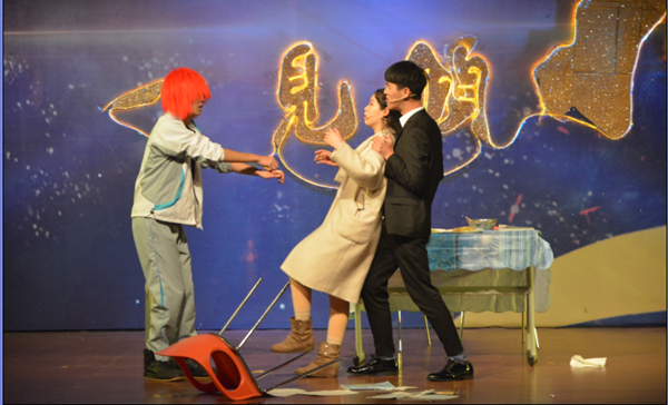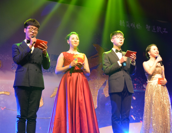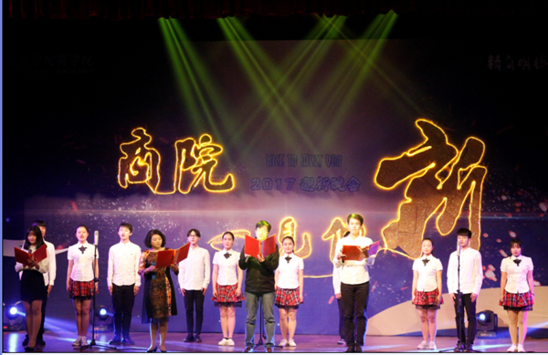 公司党委书记施敏颖老师在晚会上致辞,辞旧迎新之际回顾了过去的一年,并对公司提出了新的期望。随后,商院团学人带来的活泼可爱的玩偶舞《Joker》迅速点燃了现场。金融163的心理情景剧《幸福一直在》催人泪下,话剧社的小品《我家孩子叛逆期》令人捧腹不已。悠扬动听的歌曲、婀娜多姿的民舞、出神入化的魔术、时尚个性的走秀,让人叹为观止。商院的老师们也毫不逊色,舞蹈《塞西莉亚》,尽显青春活力。最后,一首由王焕祥老师创作,潘煜双老师、王焕祥老师、吴恺中和奚旖旎两位同学领诵的《商院颂》道出了每位商院师生的心声与向往,将晚会推向高潮。“公司沧海何时发,愿为你早生华发。早生华发又何妨,愿得一路撒书香,书香里阅尽来日辉煌……”