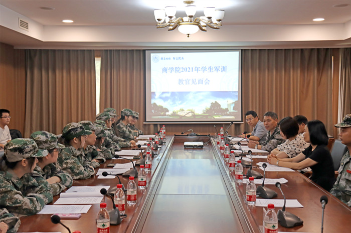7月2日下午,永利yl23411官网2020级员工军训教官见面会在行政楼三楼会议室举行。公司党委书记邵燕、团委书记潘欣、三团十连连长徐超,全体军训教官、指导员、辅导员和各排副排长、卫生员参加见面会。会议由潘欣主持。