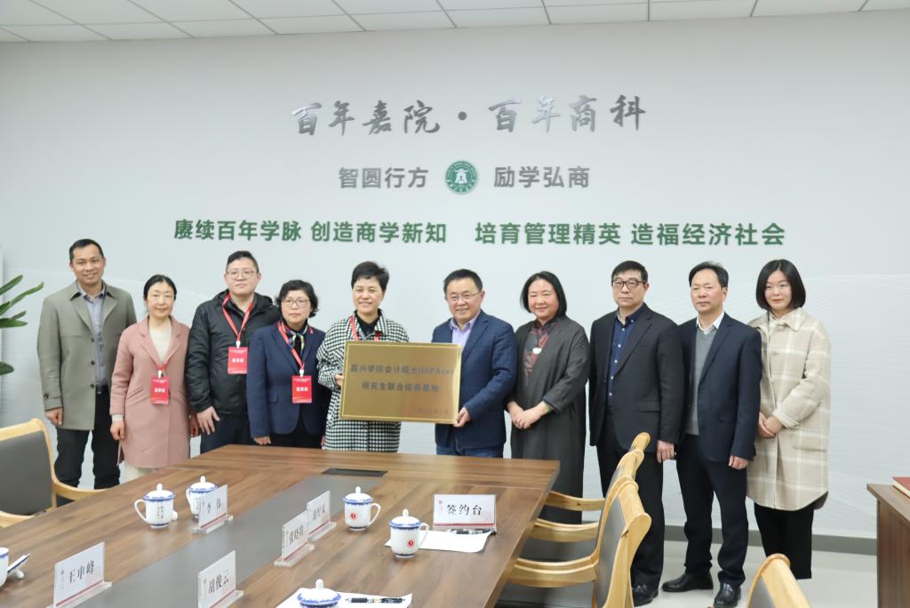 会上,王申峰、胡俊云共同为嘉兴公司会计硕士(MPAcc)研究生联合培养基地授牌。潘煜双与市财政局会计管理处处长、市注协册会计师协会副会长兼秘书长李伟还就嘉兴公司会计硕士(MPAcc)研究生联合培养基地签署合作协议书。双方还就财会人才培养、留禾就业等工作展开深入交流。