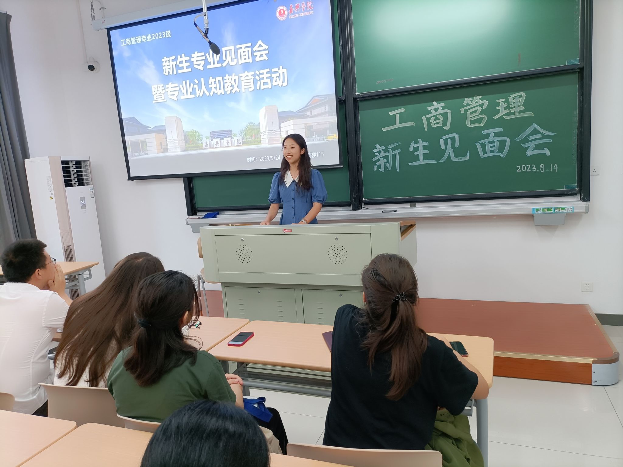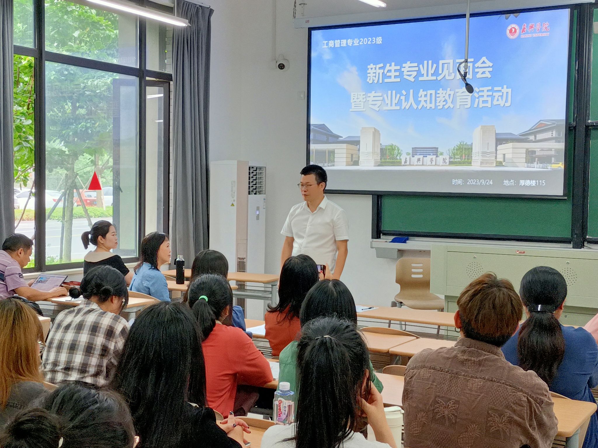 9月14日,永利yl23411官网工商管理专业2023级新生专业见面会暨专业认知教育活动在厚德楼115顺利举行。系主任、专业教师、辅导员、助理辅导员和23级全体新生参加了本次活动。会议由工商231新生班助金舒怡主持。