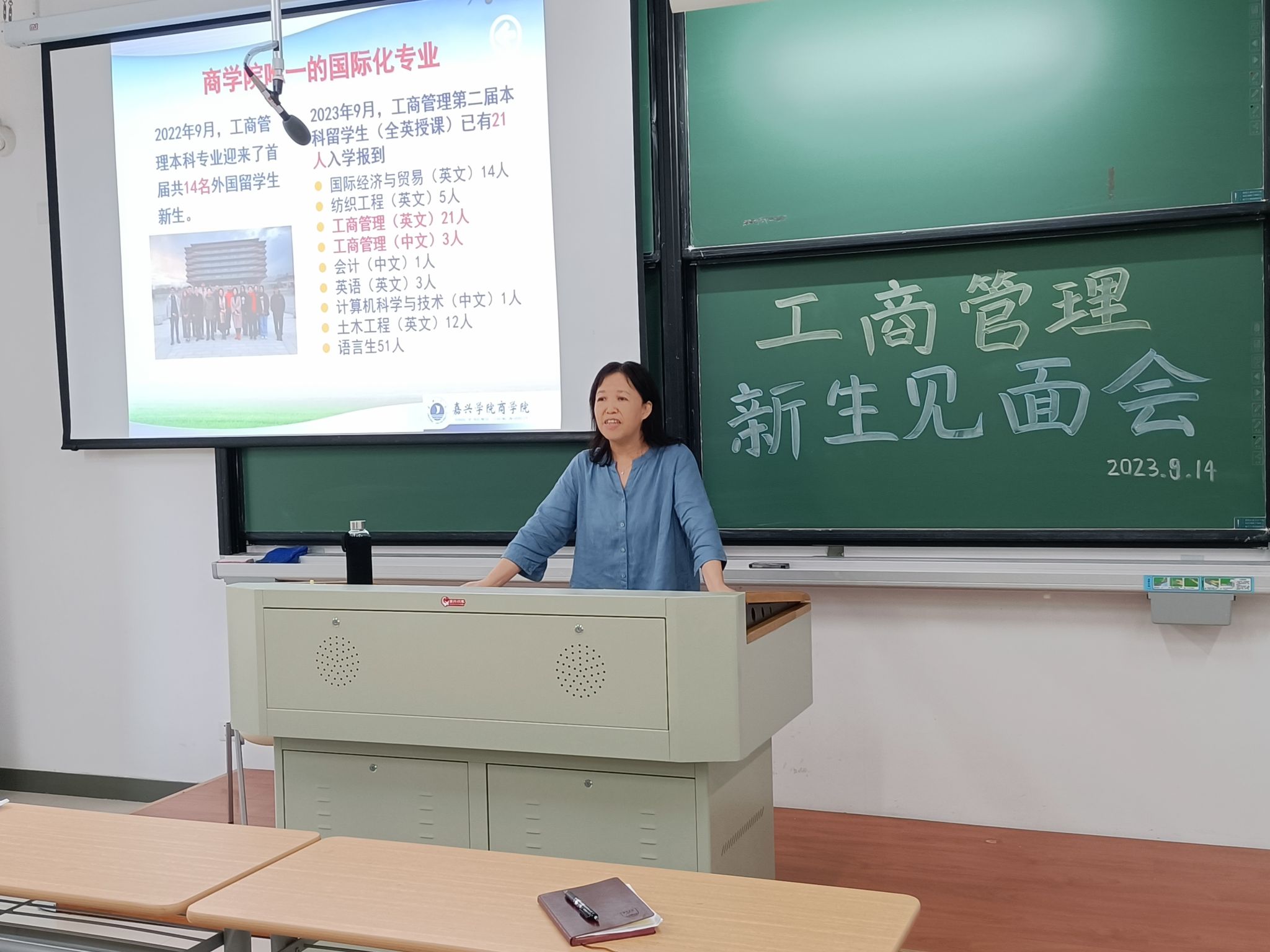会议第二项议程,唐雯教授充分讲解了工商管理的专业详情。从专业发展史、员工生源、员工培养目标、团队力量等几大方面,详细介绍了工商专业的特点与优势。同时,向新生们展示了就业数据和考研录取情况,鼓励新生们在专业领域有所造诣。最后,唐教授对新生提出了几点要求,给予新生鼓励和厚望。