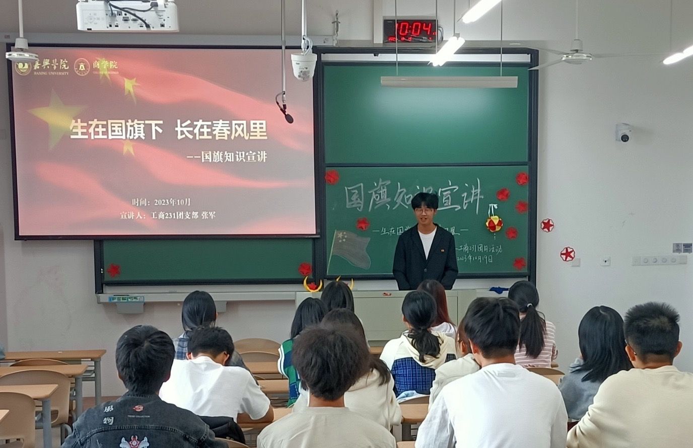10月19日上午,公司工商231团支部在明德楼571教室开展“生在国旗下,长在春风里”主题团日活动,校团委张婧嫄书记、刘永杰副书记参加活动,团支部书记张军主持活动。