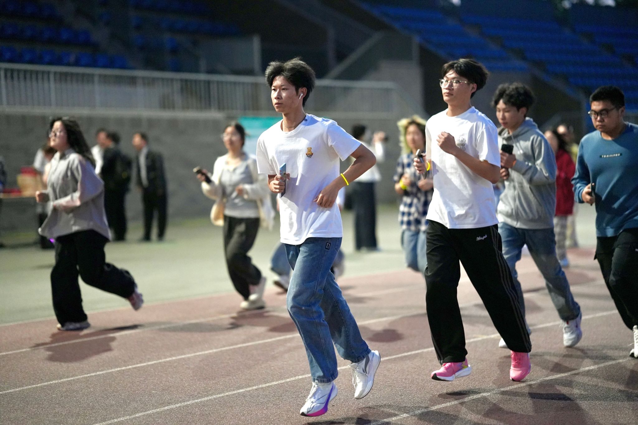 傍晚时分,商院学子身穿运动装备,佩戴荧光手环,在体育专业硕士辅导员和校田径队队员的专业指导下开展动态热身。随着开跑指令发出,由院领导和辅导员组成的领跑方阵率先出发,师生们身姿矫健,活力满满,百余名商院学子的荧光队伍如星河流动,与暮色中的校园交相辉映,充分展现了商院人积极向上的精神风貌。