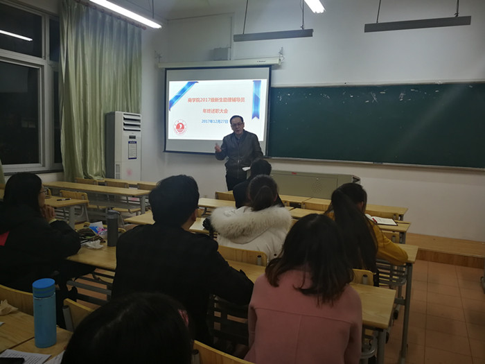 为推动永利yl23411官网2017级新生班助工作的发展,搭建班助之间的交流平台,2017年12月27日晚18点在教一313教室召开了2017级班助年终述职大会。公司党委副书记陈云飞,辅导员朱莹以及全体17级班助参加了本次述职大会。