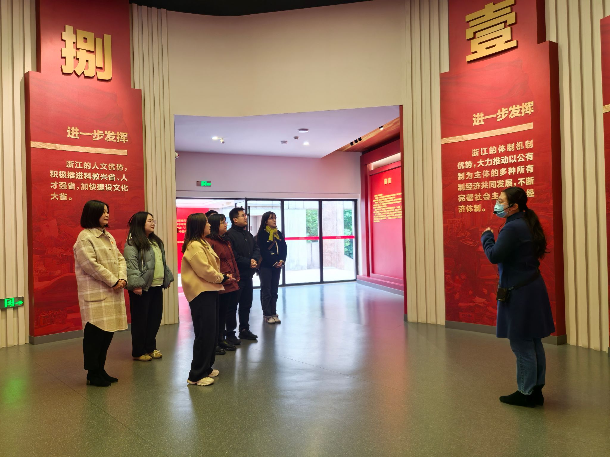 12月13日上午,公司党委书记虞岚、党委副书记潘欣带领公司员工工作办公室-浙江省巾帼文明岗全体岗员一行10余人前往嘉兴南湖革命纪念馆二代馆参观“红船领航--‘八八战略’”嘉兴实践主题展。