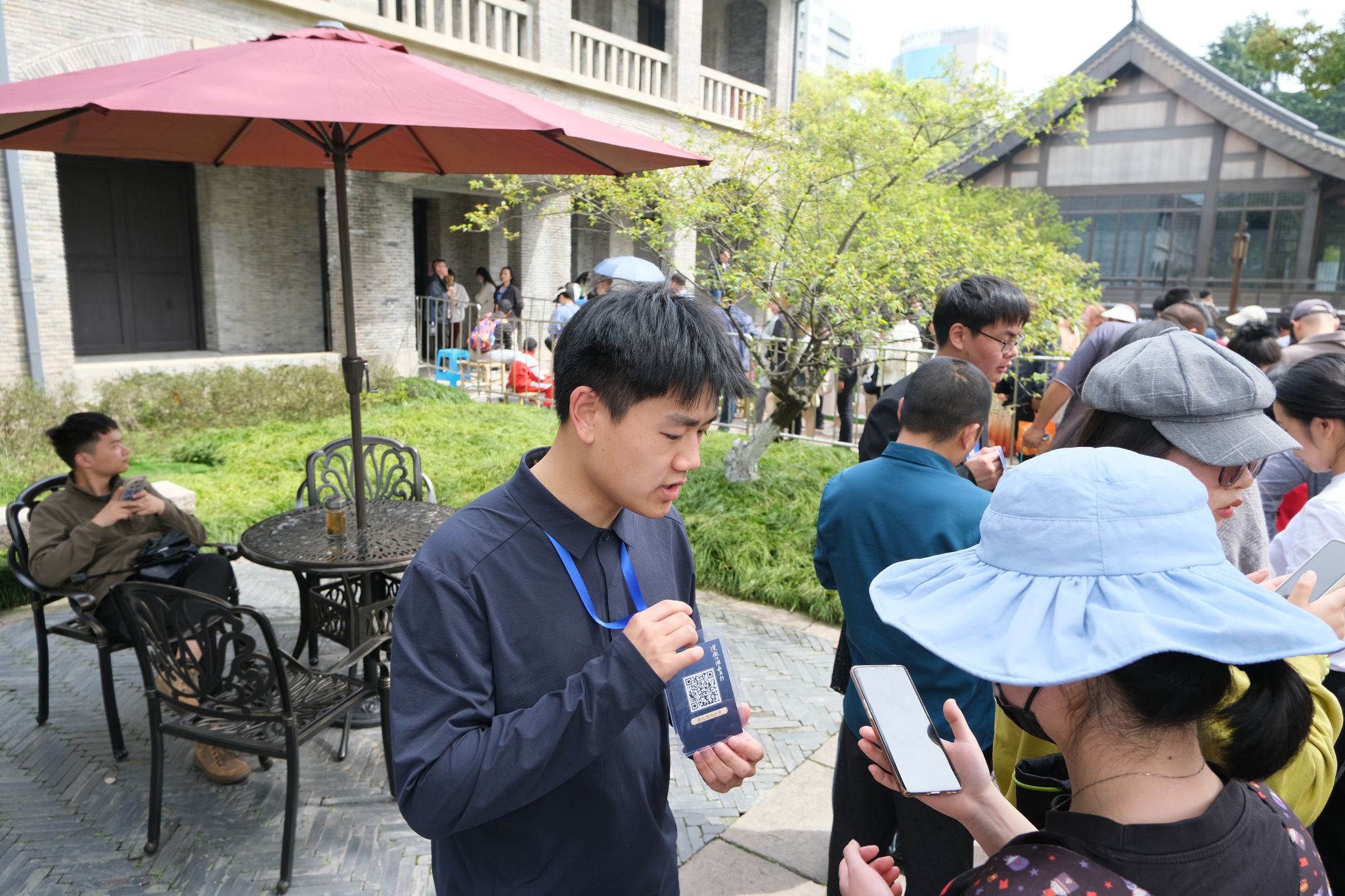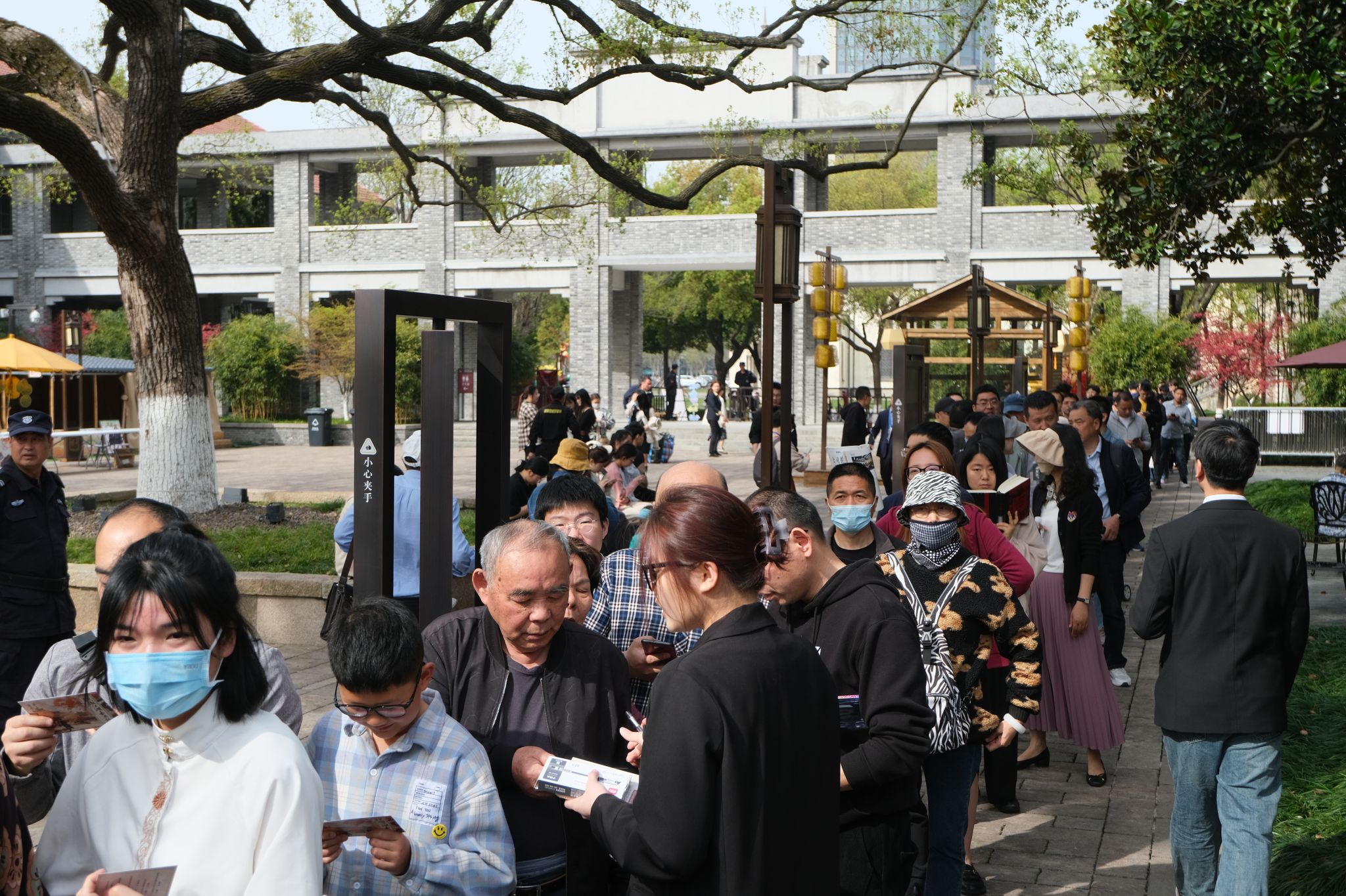 持续一整天的活动现场,志愿者们忙绿的身影随处可见。在“侠客护照”领取处,他们负责2250份“侠客护照的有序发放,向游客介绍金庸先生的生平、经典作品以及在金庸作品中出现过的“嘉兴地图”, 如子城、南湖烟雨等。在经典作品发放处,他们负责1000份金庸经典作品的“免费抢售”。 他们还承担场内场外组织协调、扫码登记、秩序维护等工作。