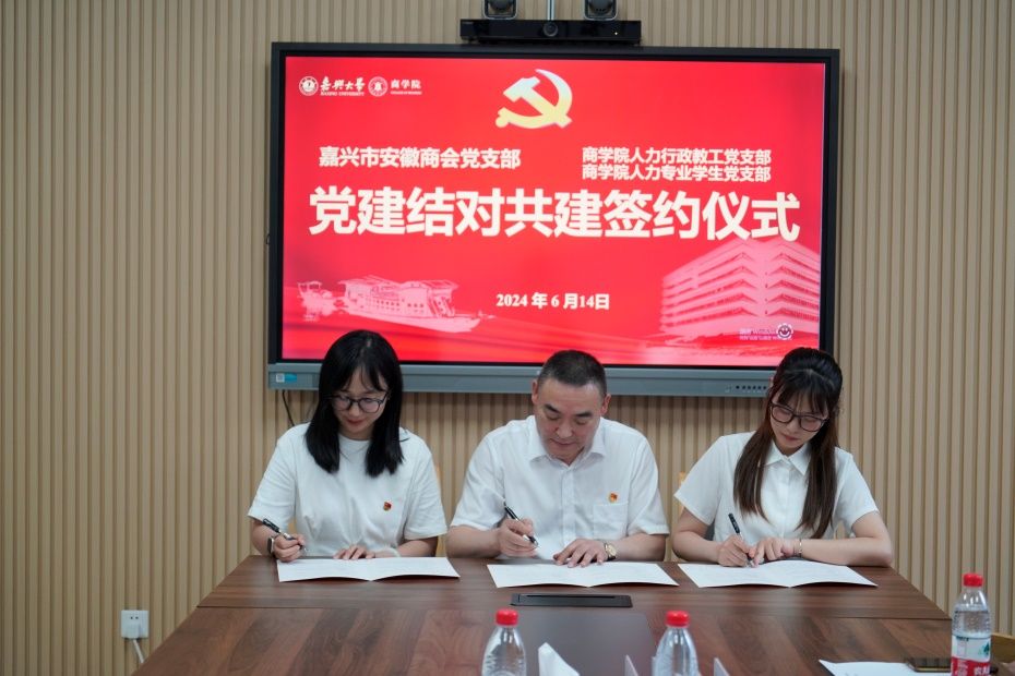 各共建党支部就共建目标、基础、内容和保障以及党纪学习教育等方面进行深入合作交流。随后,永利yl23411官网信息专业员工党支部与嘉兴市市场监督管理局直属机关计量公司党支部、永利yl23411官网财务专业员工一、二党支部与中华联合财产保险股份有限公司嘉兴中心支公司本级党支部、永利yl23411官网人力行政教工、人力员工党支部与嘉兴市安徽商会党支部分别签署党建结对共建协议书。
