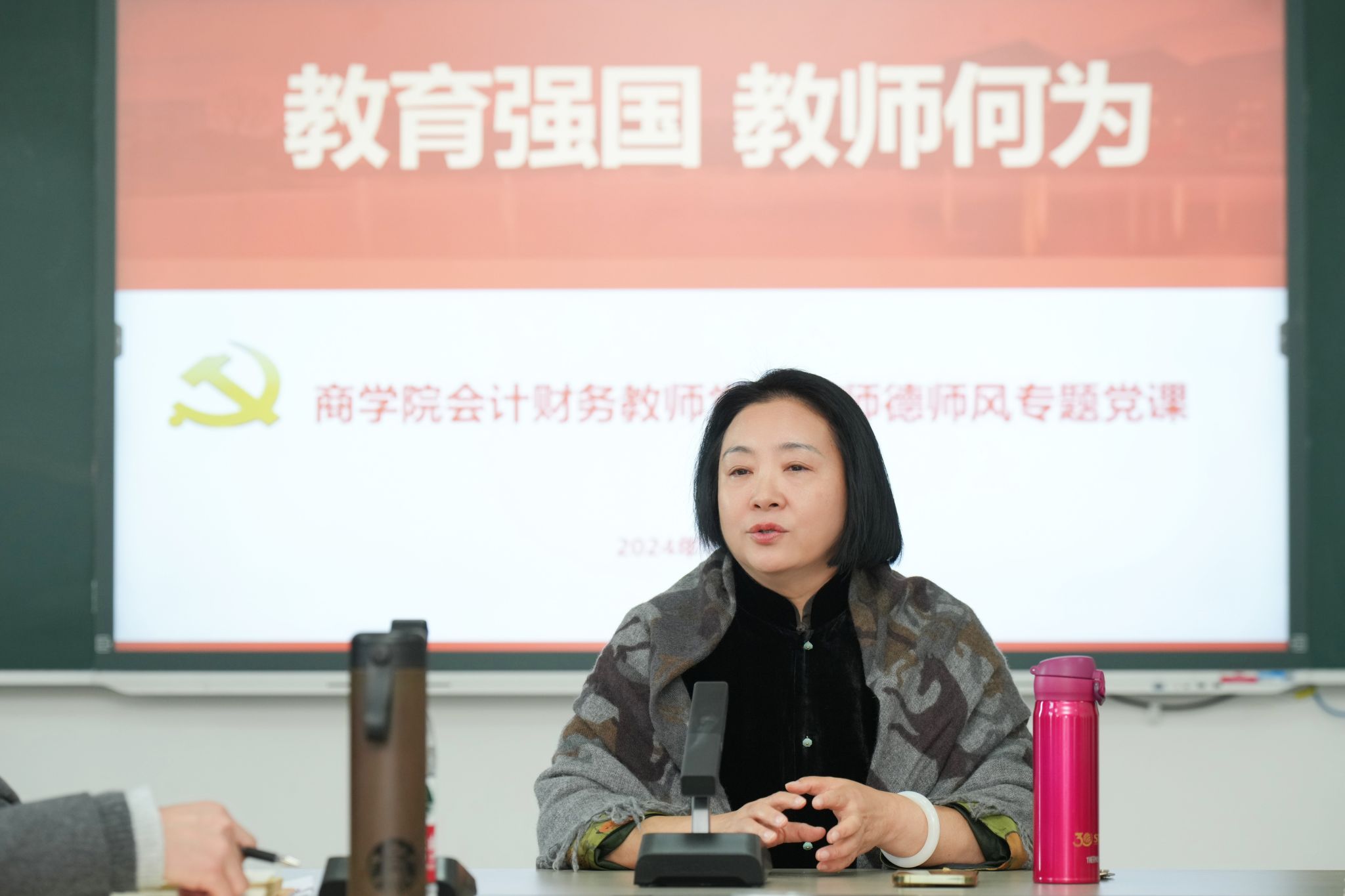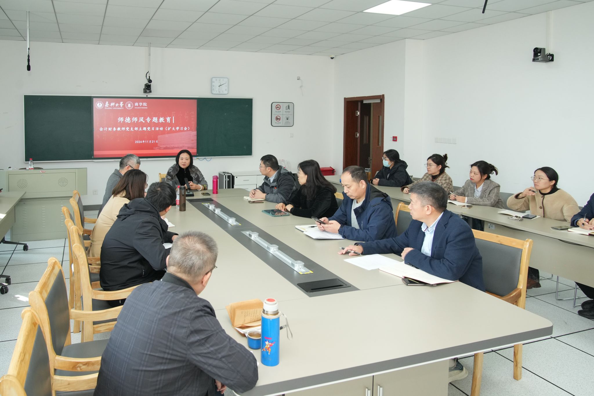 为了深入学习贯彻党的二十届三中全会精神,加强教师队伍的思想建设,弘扬教育家精神,1121日下午,永利yl23411官网会计财务教师党支部召开“大力弘扬教育家精神,加快建设教育强国”师德师风专题党课。此次党课由党支部书记潘煜双作主讲,会计系和财务管理系全体教师31人参加党课。