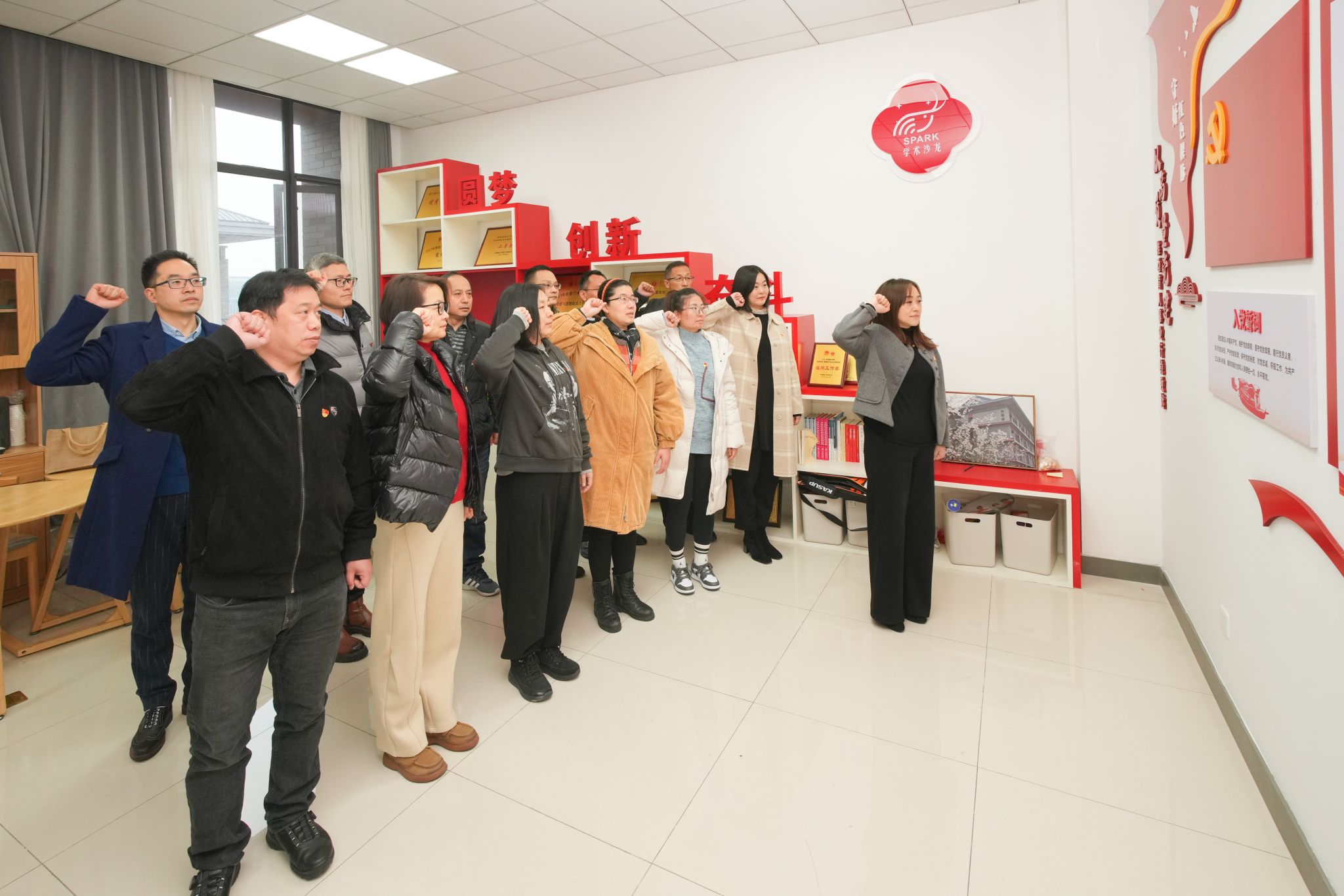 虞岚简要介绍了13位过政治生日的党员同志的基本情况,各党支部书记13位同志一一赠送了“政治生日贺卡”赠送了《中国式现代化的文化基因》一书,并合照留念。“政治生日”现场庄严又不失活泼,温馨的礼物和祝福营造了浓浓暖意。会上,全体党员面对鲜红的党旗,高举右拳,重温入党誓词。