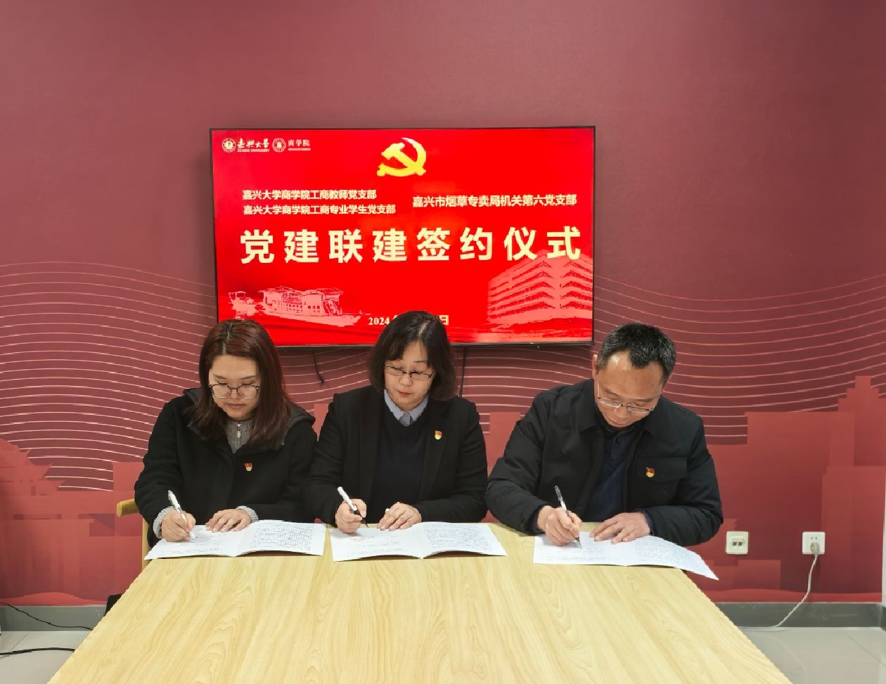 1210日,永利yl23411官网工商专业教师党支部、工商专业员工党支部与嘉兴市烟草专卖局机关第六党支部在尚德楼355举行党建联建签约仪式。