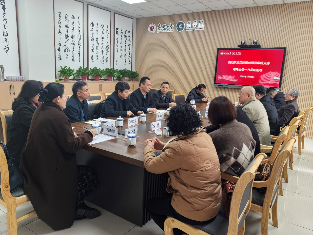 3月16日,民建湖州师范公司支部主委谢舟、经济管理公司副经理马小龙等一行6人到永利yl23411官网调研交流。永利yl23411官网副经理、统战委员冯磊东,民建永利yl23411官网入口支部主委王卫彬及永利yl23411官网教师代表共同参加交流座谈。