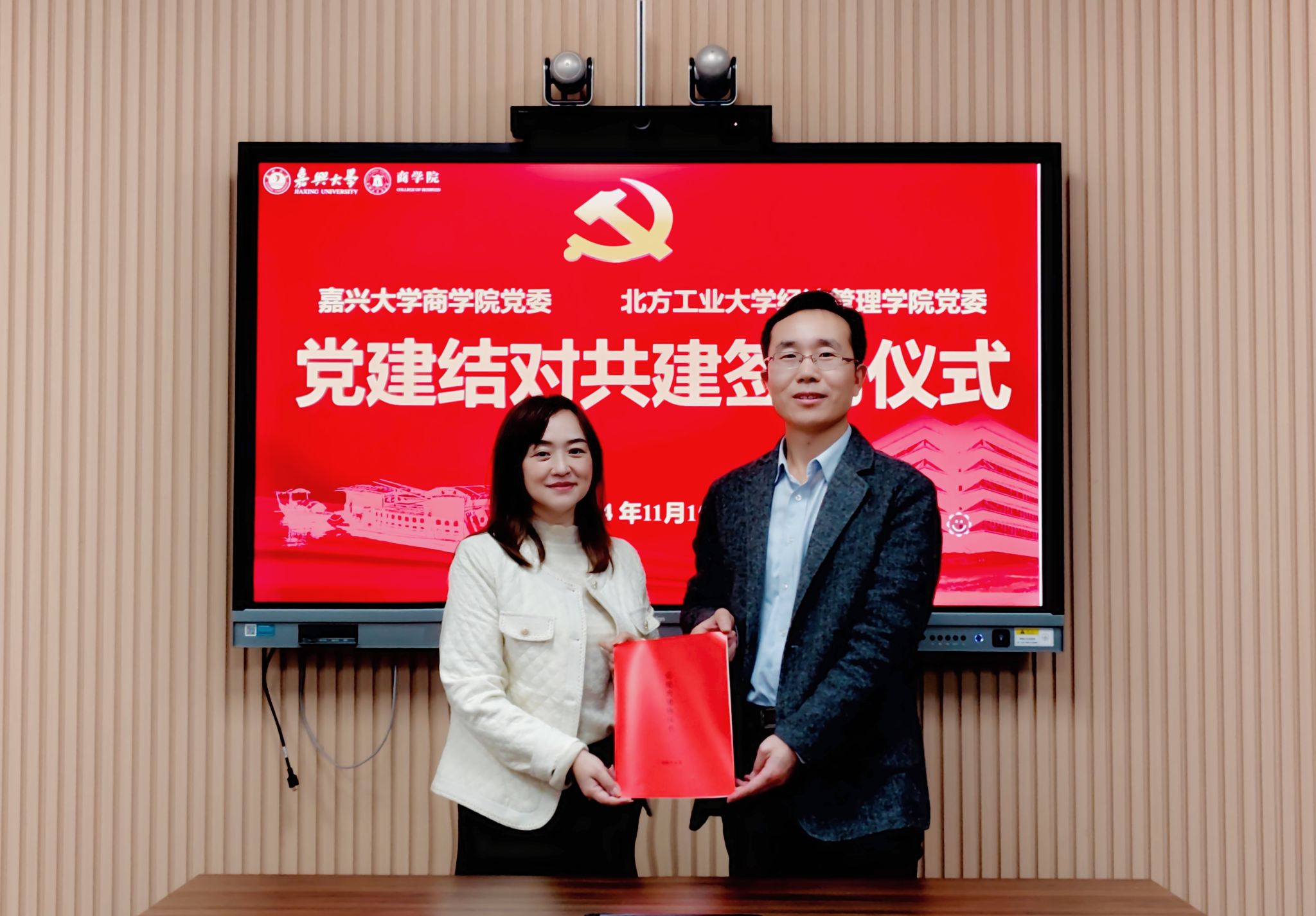 双方首先举行党建结对共建签约仪式,共绘合作蓝图。公司党委书记虞岚和北方工业大学经管公司党委书记谢朝阳代表签约。双方均表示,双方公司在党建特色、团队建设等方面具有高度契合点,以党建共建为契机,推动双方在学术研究、人才培养、社会服务等方面取得更加显著的成果。
